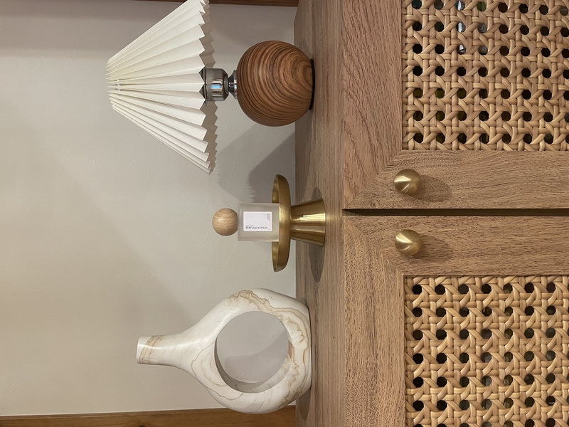 まずはリビングのサイドボード上に。ナチュラルなリビングに、程よいスパイスが加わり、上級者のような垢抜けた雰囲気になりました。