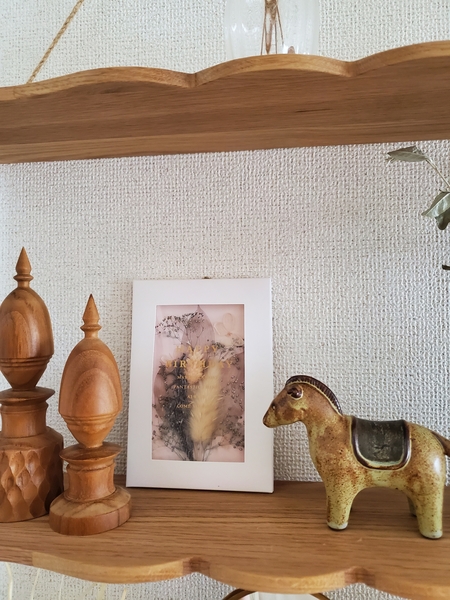 高さや幅が限られたウォールシェルフは、中に飾るものに困ることも。そんなとき、ディスプレイアイテムの1つとして、Sサイズを取り入れてみてください。