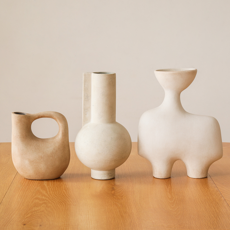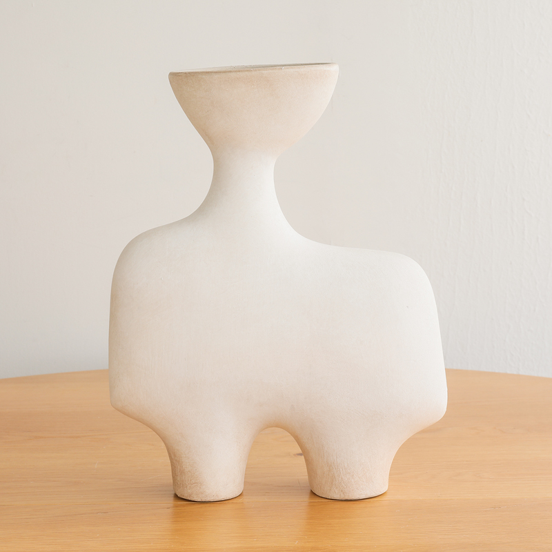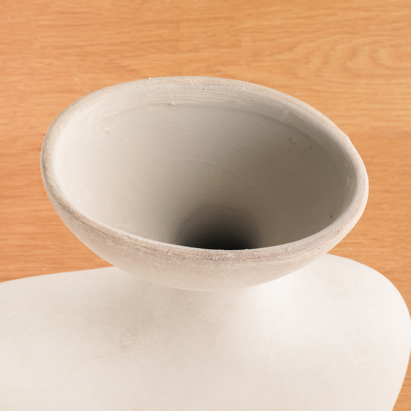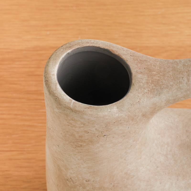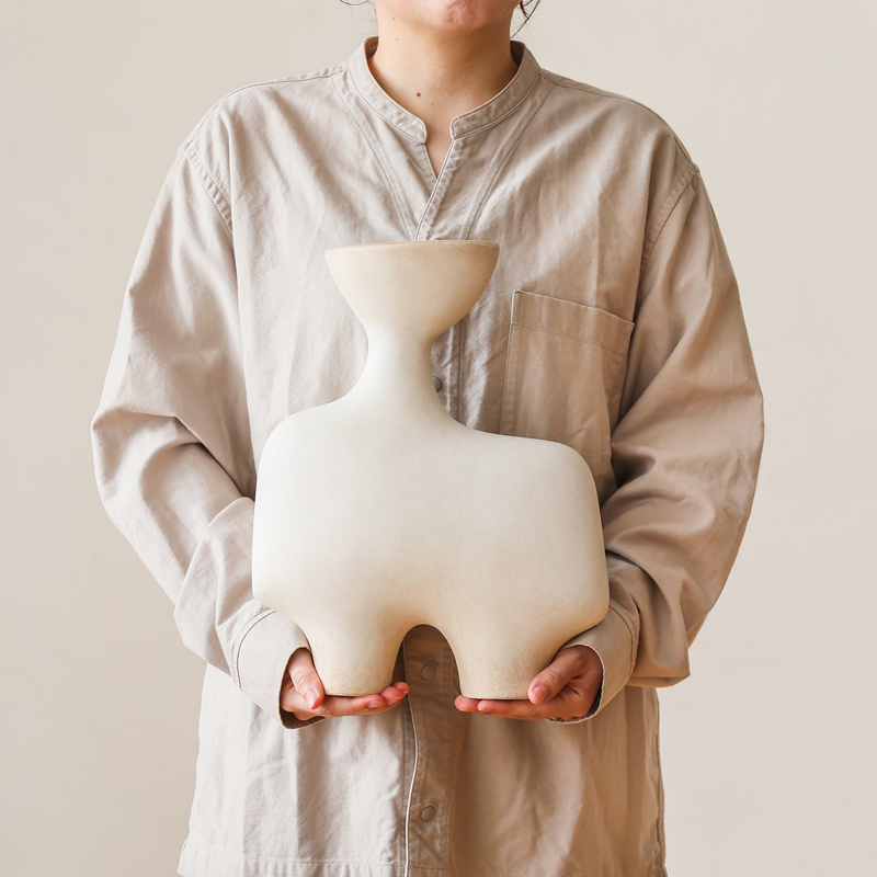 焼き物ならではのムラのある質感が、抽象的なフォルムに、味わい深い表情を加えます。