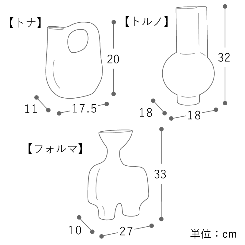 トルノ:約 幅 18cm × 奥行き 18cm × 高さ 32cm