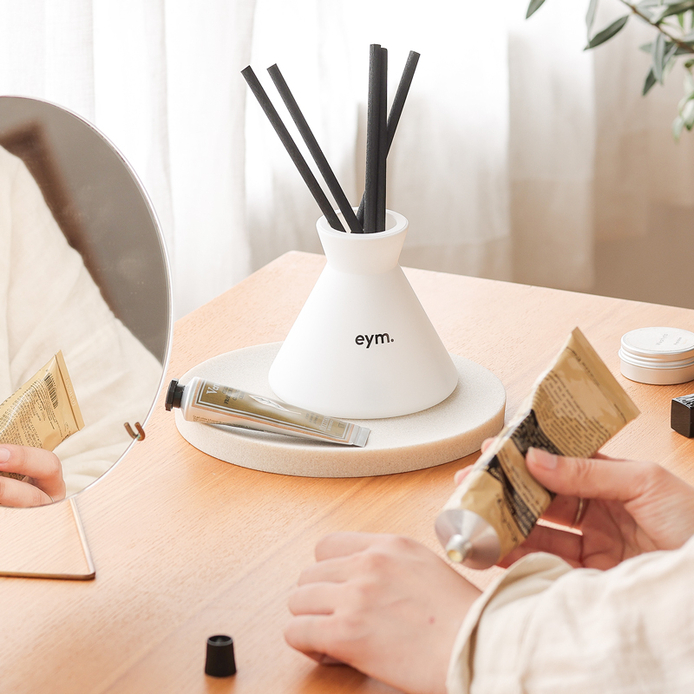 お休み前のリラックスアイテム。細々したものをまとめてすっきりと。スマートなサイズ感なため、スペースがあまり無い場所で活躍するアイテムです。
