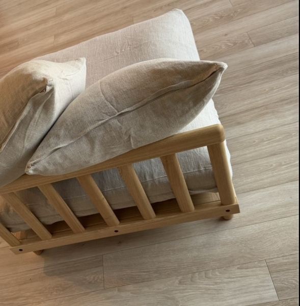リネン生地をはじめとした明るい色味の生地との相性が良く、ナチュラルなお部屋作りにおすすめです。