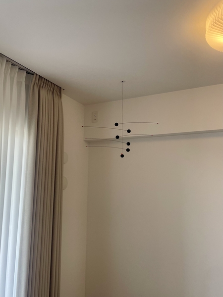 そんなぽっかりとした空間にモビールを飾ることで、立体感が生まれ、お部屋全体がより洗練された印象になりました。