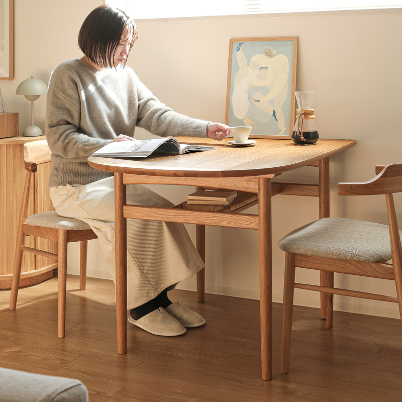 Re:CENO product|ダイニングテーブル Pair 幅100cm ハーフラウンドタイプ【オーク天板×オーク脚(棚板付)】
