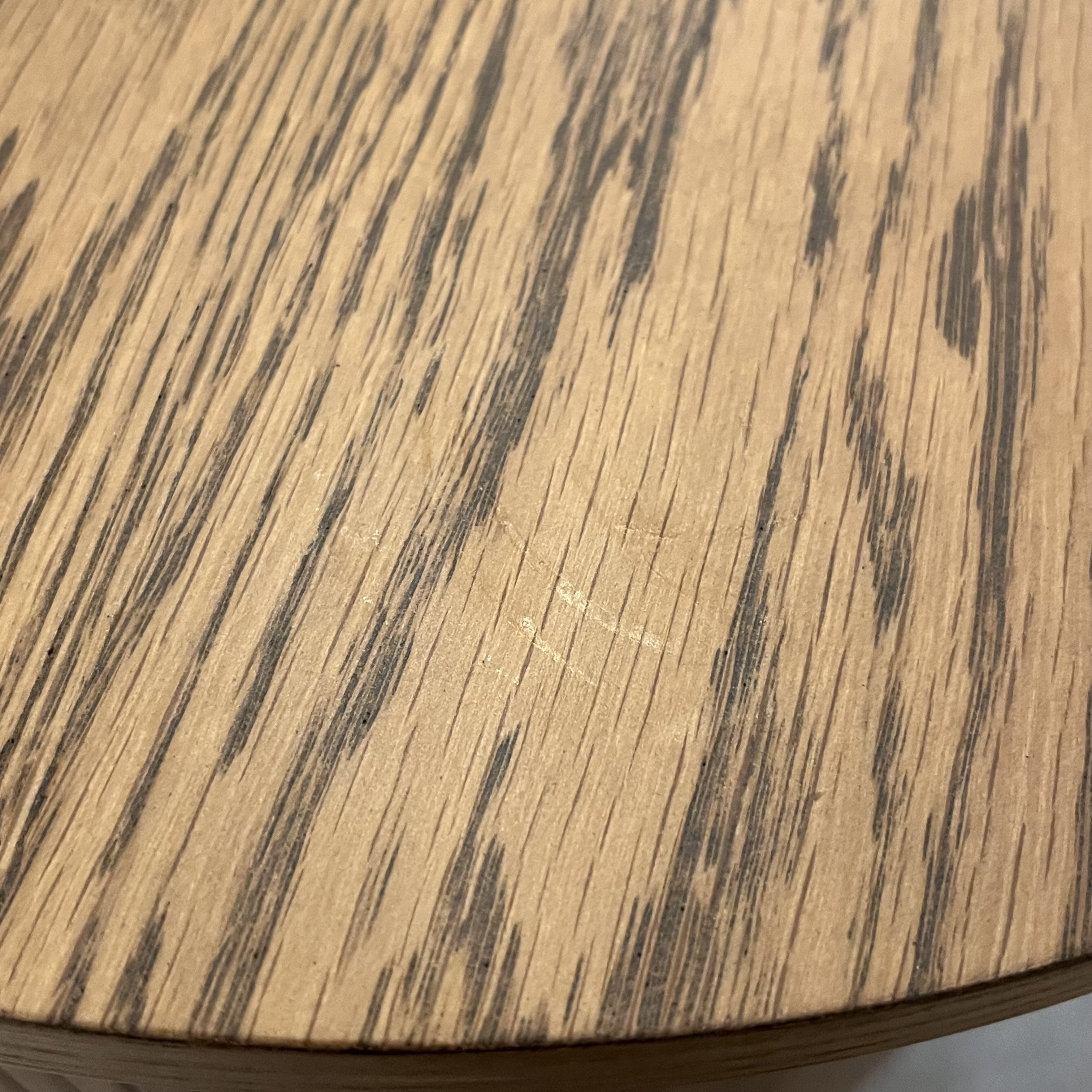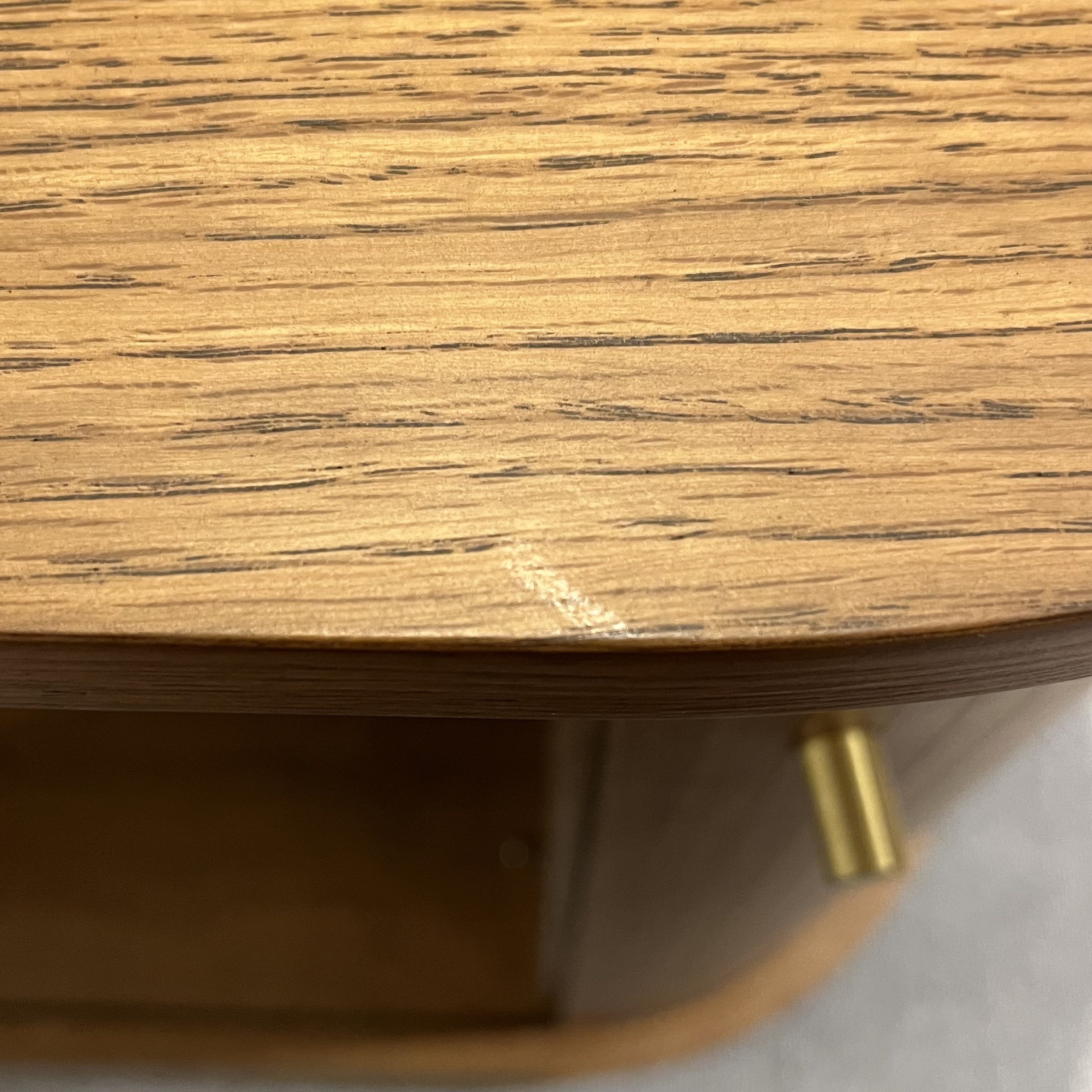 伸長板無し、円形天板のみ。脚先塗膜擦り傷あり。 |
