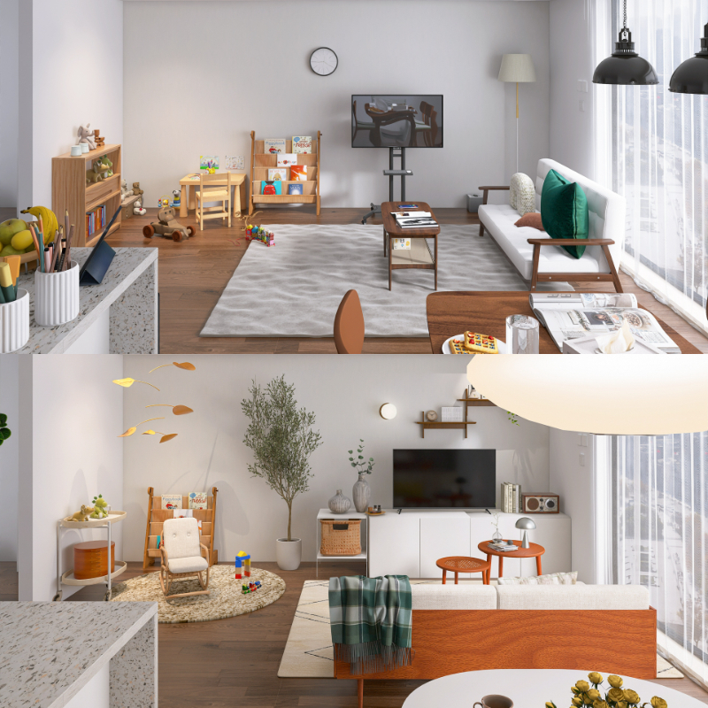 小さなお子様のいるご家庭のリビングコーディネートをご紹介します。