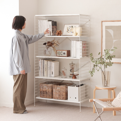 ソファーの背面には、シェルフを置いて