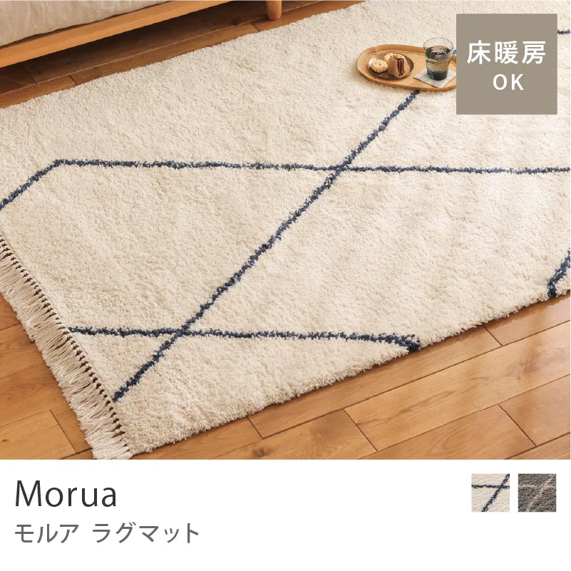 長く愛用できる耐久性を備えた「ラグマット Morua(モルア)」。取り入れる空間を選ばず、さりげないアクセントとして個性を放ちます。