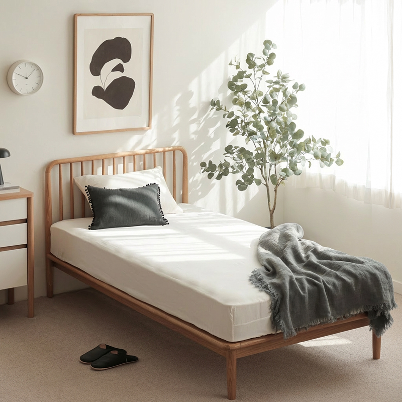 そこに、クッションやブランケットで色柄を足せば、美しく整った寝室が完成します。