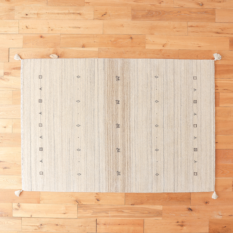 そんなギャッベの個性的なデザインはそのままに、ナチュラルな色合いに仕上げられた「Aile ギャッベ」。