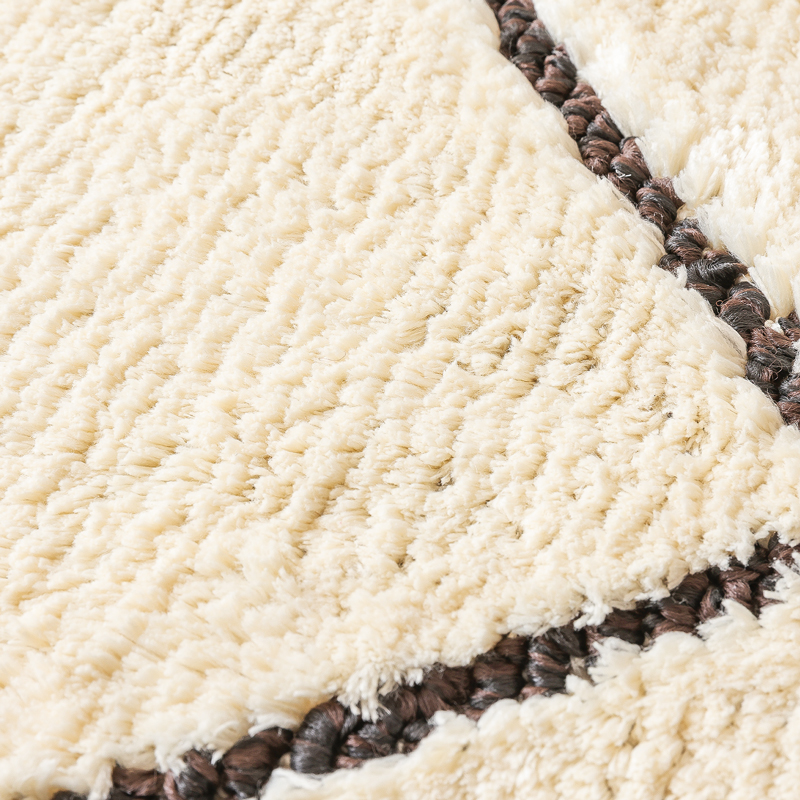 そこに、表面に小さな輪っかの並んだ「ループパイル」を組み合わせることで、弾力感がプラスされ、耐久性の高いラグマットが出来上がるのです。