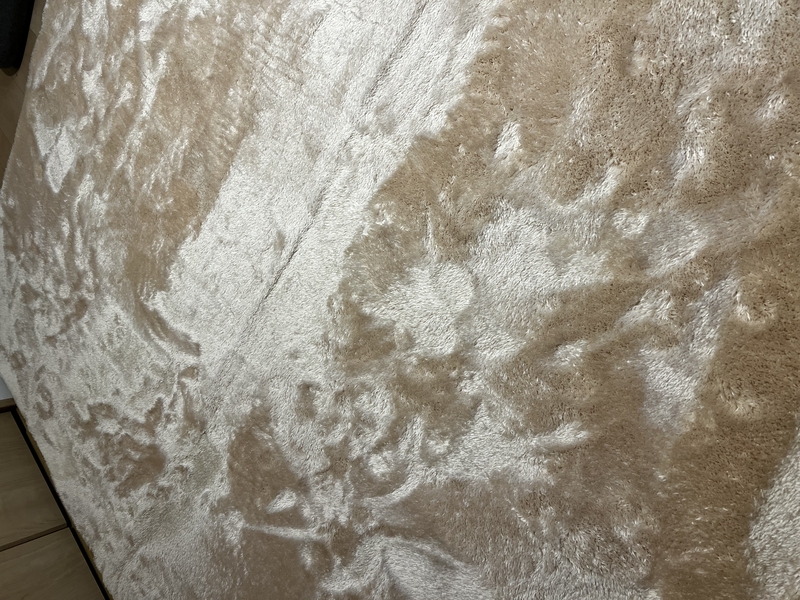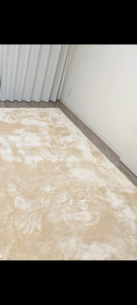 最初、敷いた時は黄色すぎるかなぁと思ったのですが、毛並の向きでアイボリーにも見えたり、ベージュになったり使用してる間にお気に入りになりました。
