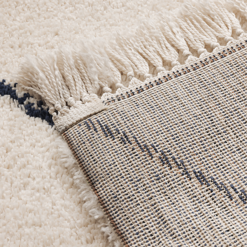糸と糸をしっかり絡めてラグの一番下まで織り込むことで、手織りのように緻密な柄を表現しながらも、頑丈で耐久性が高いのが特徴です。