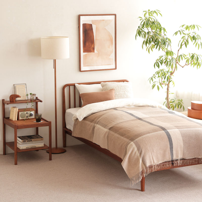 また、暖色系の木製家具との相性がぴったり。ブラウンやヴィンテージレッドとのコーディネートがおすすめです。