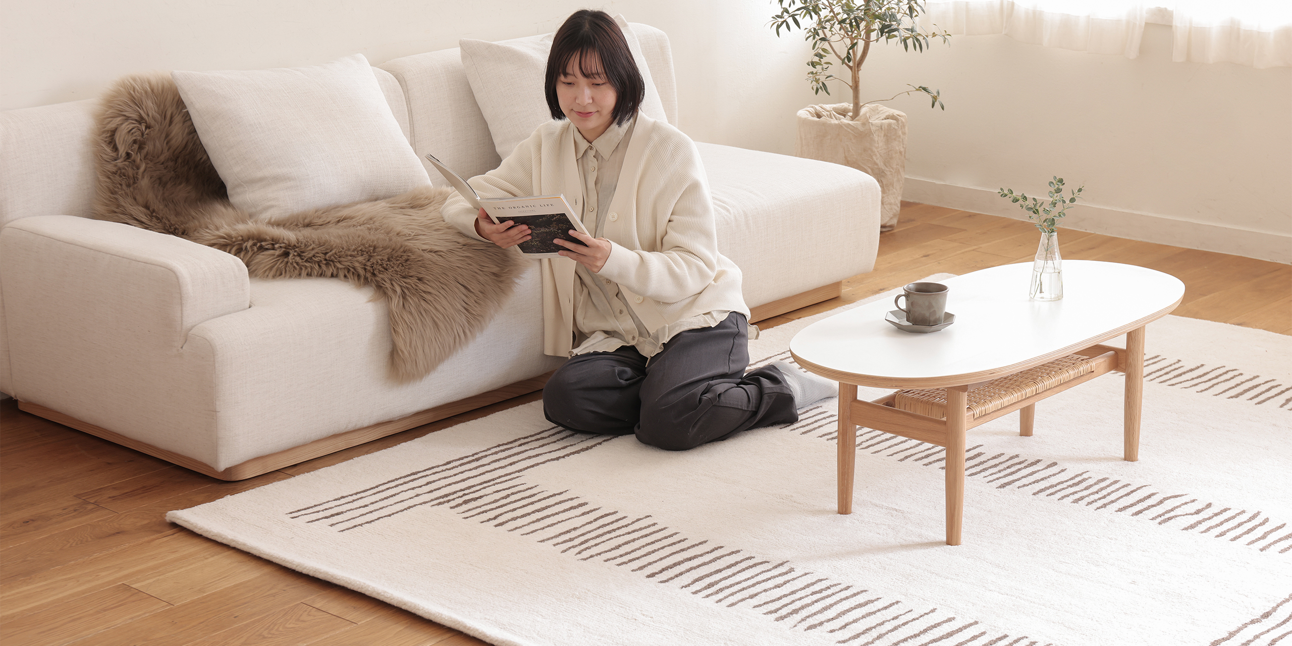 また、お部屋の大部分をカバーできるので、ラグの上でゴロンと寝転がったり、床でくつろぐ時間が多い方にもおすすめです。