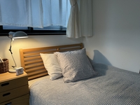 最初窓際にヘッドボードを向けるつもりでしたが、緊急時出られなくなりそうなのでリビング向きに。