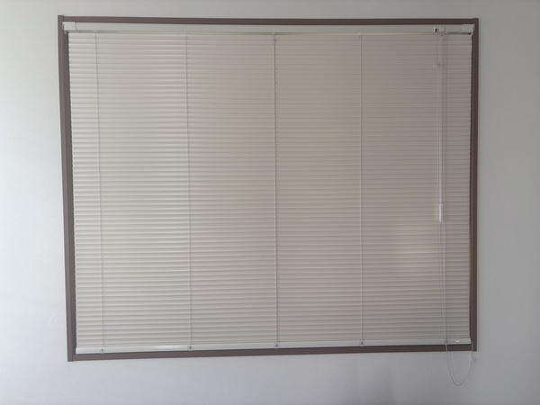 今までのブラインドが、色はダークブラウン、スラットは太めだったので、