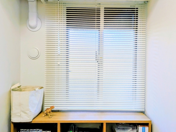 視線の高さが向かいの建物と合ってしまうので、ブラインドにすることで、簡単に視線を遮りながら光を取り込むことが出来るようになりました。