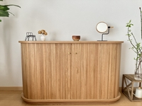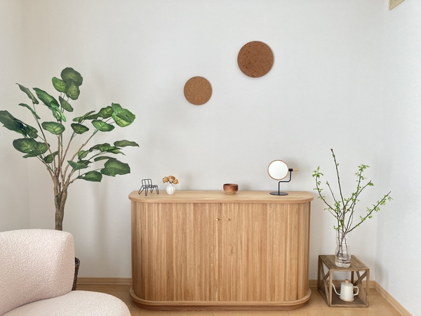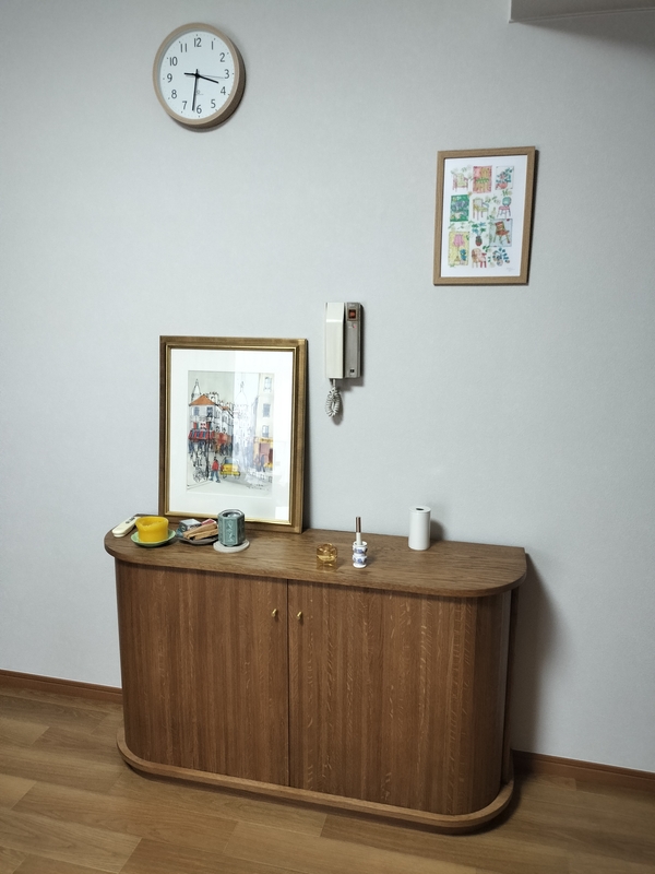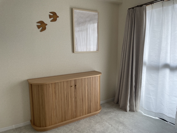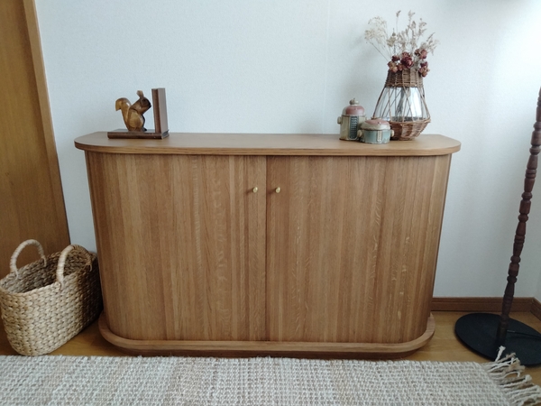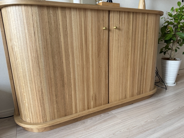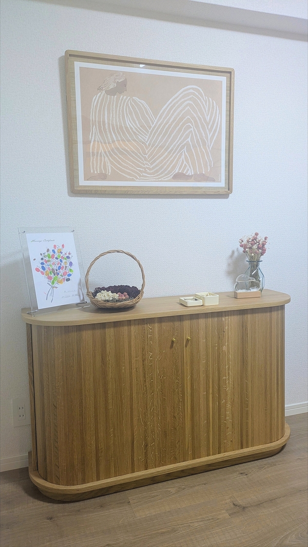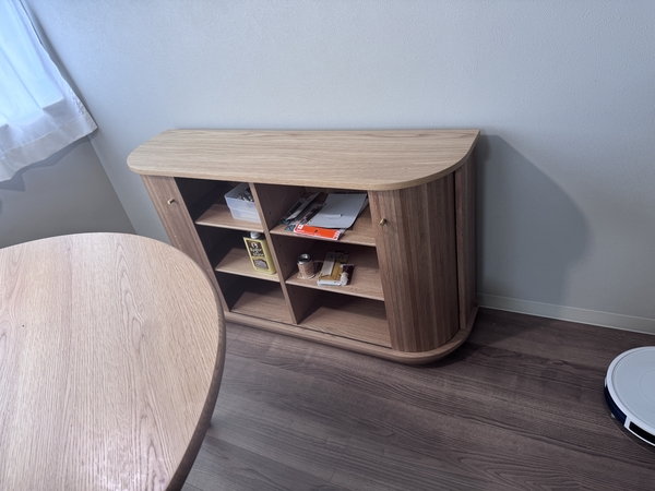・見た目がとても可愛いです。玄関先から家具の側面が見える配置のため、壁の様に空間が遮断されるのが嫌でしたが、ラウンド曲線で空間に馴染んでくれました。