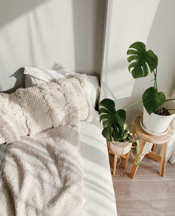 オートミールのカラーとも相まって寝室が一気に可愛くなりました!