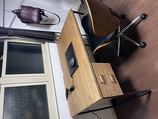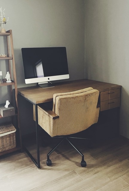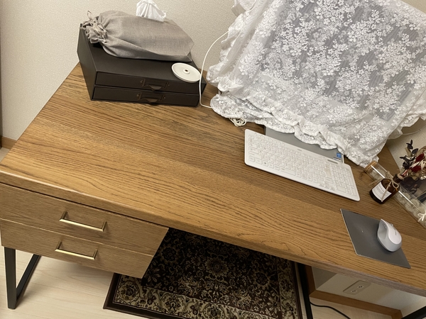 このデスクがある部屋は木の香りがして気持ちも良い。お家でのデスク作業が多い方は是非購入をおすすめします。