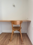 背もたれの広さも絶妙で、ちょっと肘を置く事もできます。肘置き付きの椅子と迷っていたのですが、結果的にその機能もささやかに満たしてくれ、非常によかったです。