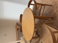 店舗にて購入。即決でした。新居用に丸いダイニングテーブルをずっと探しておりましたが、