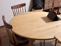 ダイニングテーブルを円形にするのに憧れていて、このテーブルに出会いました。