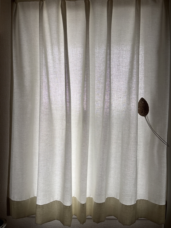 日光が入り明るいのが印象的なお部屋。外の光が透けて見えるカーテンであるためそれが活かせることができました。大満足です!