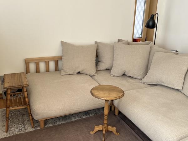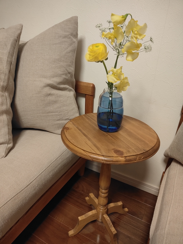 サイドテーブルにもなり、なんといっても軽くて何処にでも移動出来るのが素晴らしいです。