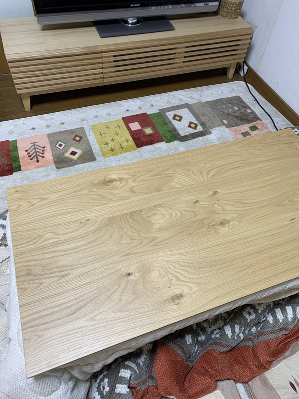 コタツテーブルに無垢材が使えない(熱で反る)みたいで色味が若干違った(白っぽいかな?)のが残念でした。