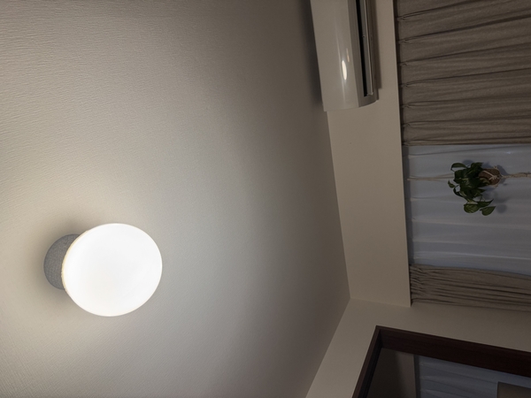中の照明電球はスマート電球に変更して、明るさをフロアライトよりも弱めに、フロアライトと同じ色に調光して使ってますが、部屋の中にもう1つ丸い月が浮かんでいるような、素敵な雰囲気になります!