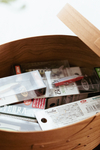 これまではかごに入れていて、中が見えるとどうしても雑多な感じがしていたので蓋付きのものを探していました。