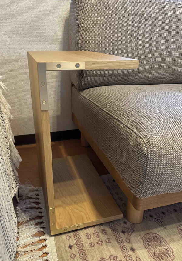 中々イメージにあうサイドテーブルに出会えずにいた時、たまたまこちらの商品を見つけて一目惚れ。シンプルなのに存在感があり、真鍮金物がアクセントになっていて、とても素敵です。少し小さいかな?と思っていましたが、飲み物やリモコンを置くのにちょうど良いサイズ感でした。来客の方にも褒めてもらえるサイドテーブルで大満足です◎
