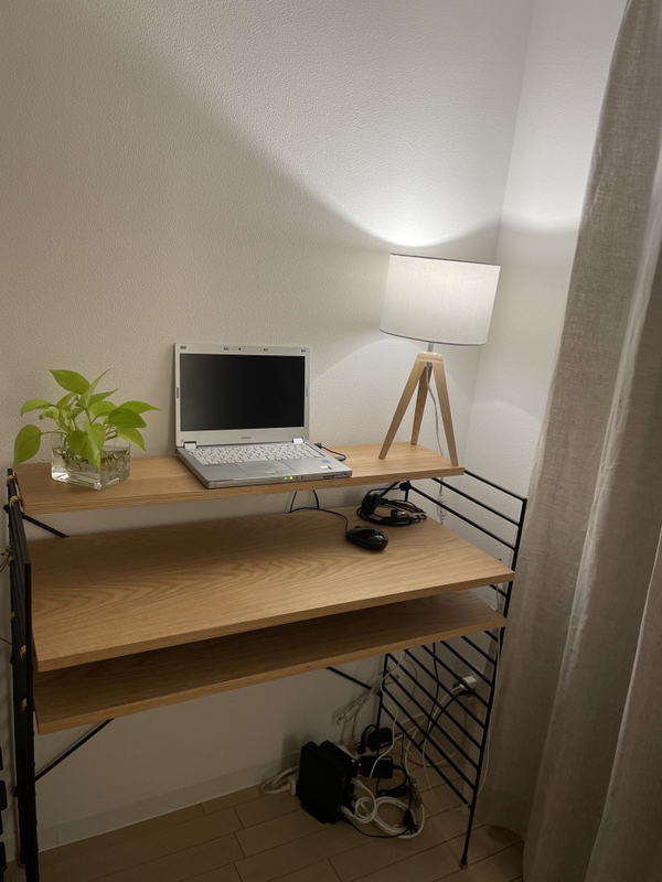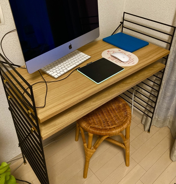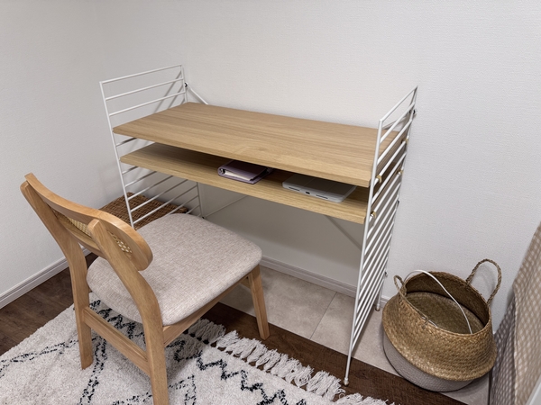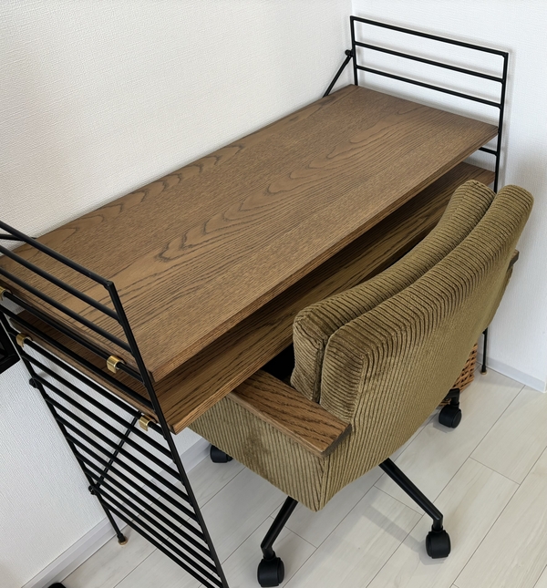 デスクを置きたかったのですが、もしかしたらあんまり使わなくなるかも・・・という不安もあったので、デスクにも棚にもなるのは目から鱗でした!