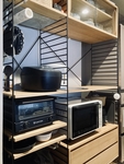 手持ちのシェルフを下の空きスペースに設置したので、既製品を購入せずに済み、自由度が高くて便利だなと感じました。