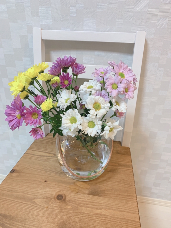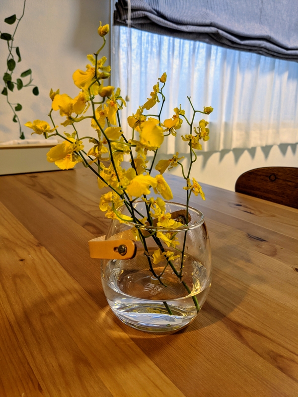 ショップの画像と同じ、黄色のオキシジューム?というお花を買って挿してみました。
