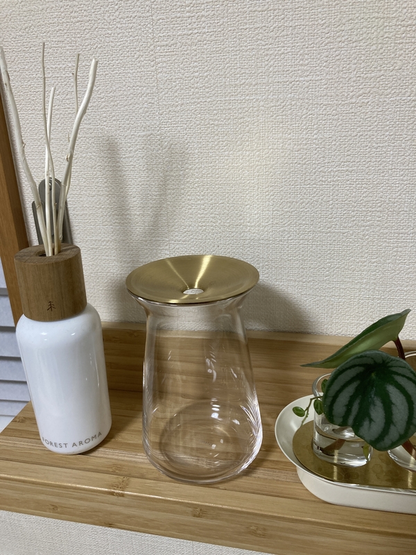 ガラスと金色のコントラストがとても美しいと思いました。植物をいれていない状態で飾っていても素敵です。
