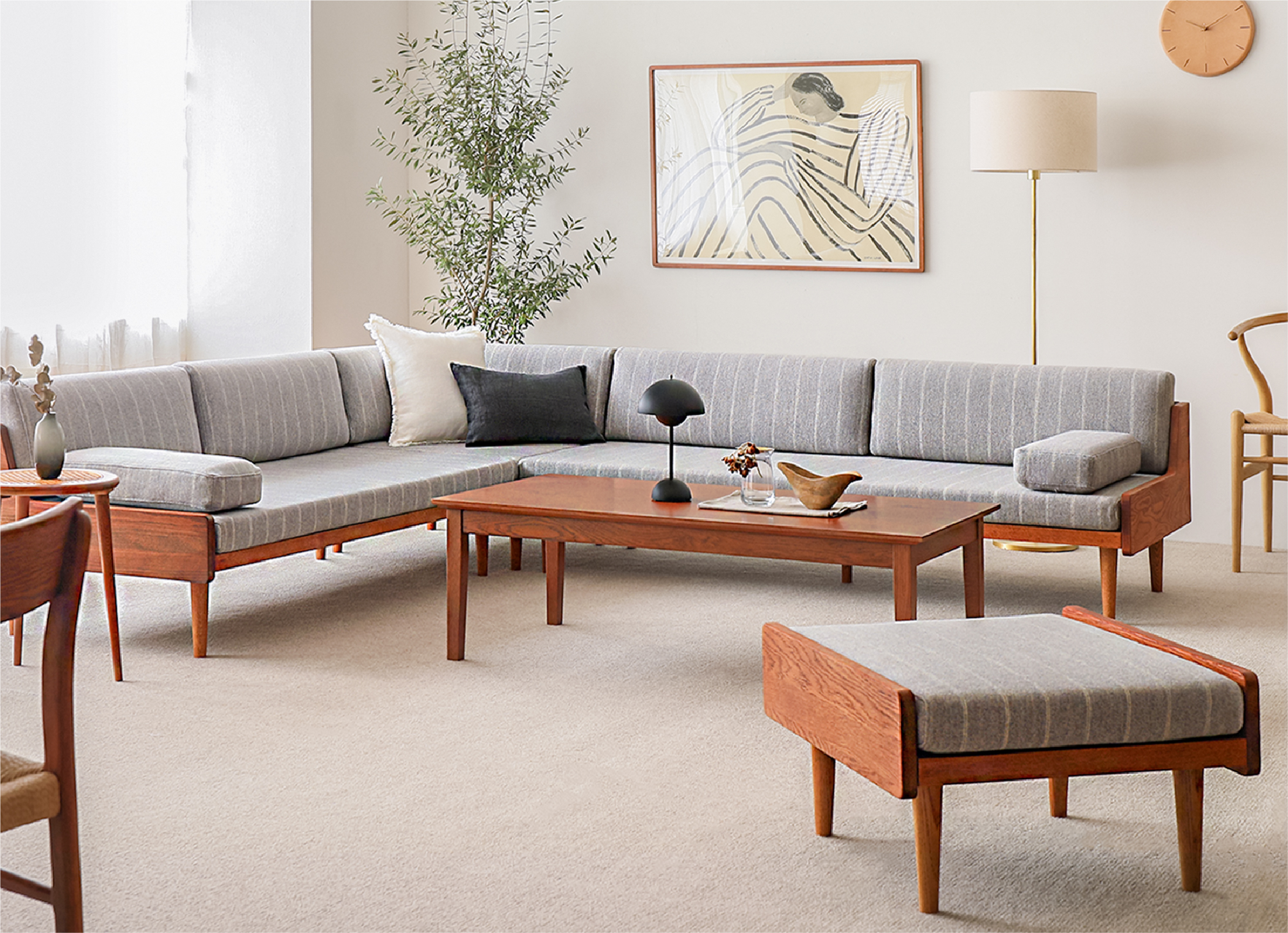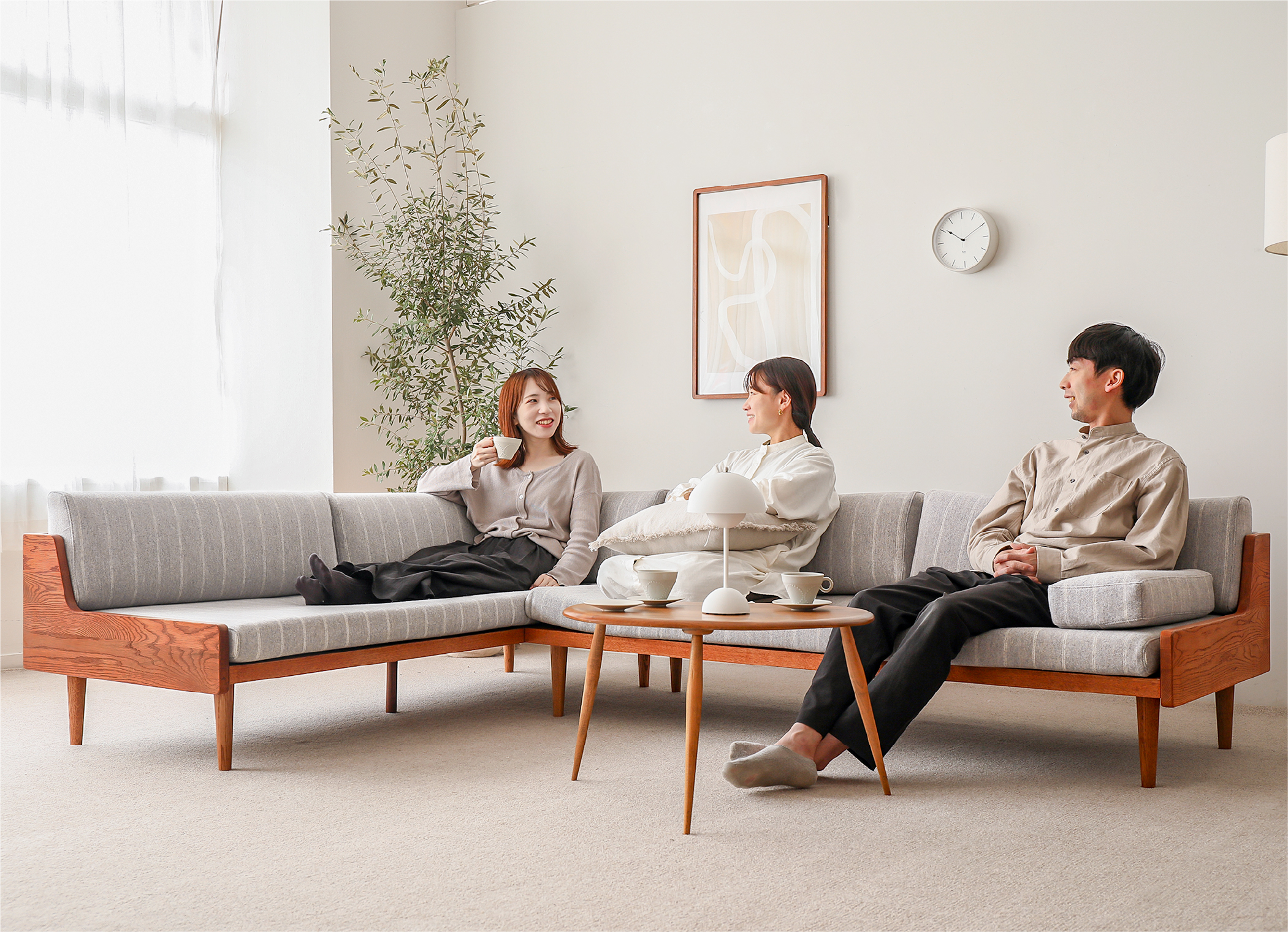 ライフスタイルの変化に長く寄り添うソファー「Along(アロング)」。圧迫感を感じない低い背面設計で、広々とした印象を保ちます。