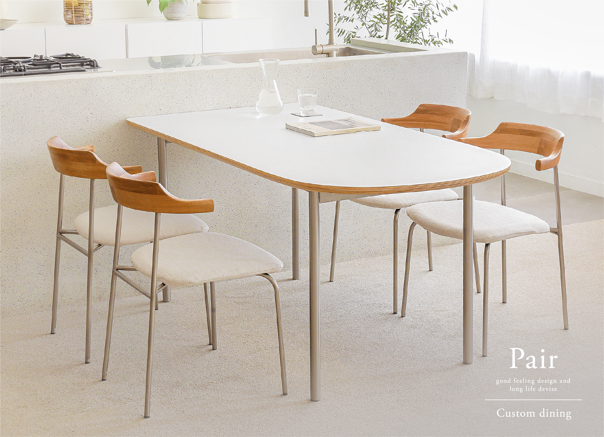 自分の好みやお部屋に合わせてカスタマイズできるダイニング「Pair(ペアー)」。温かみのあるお部屋にも、モダンなお部屋にもフィットします。