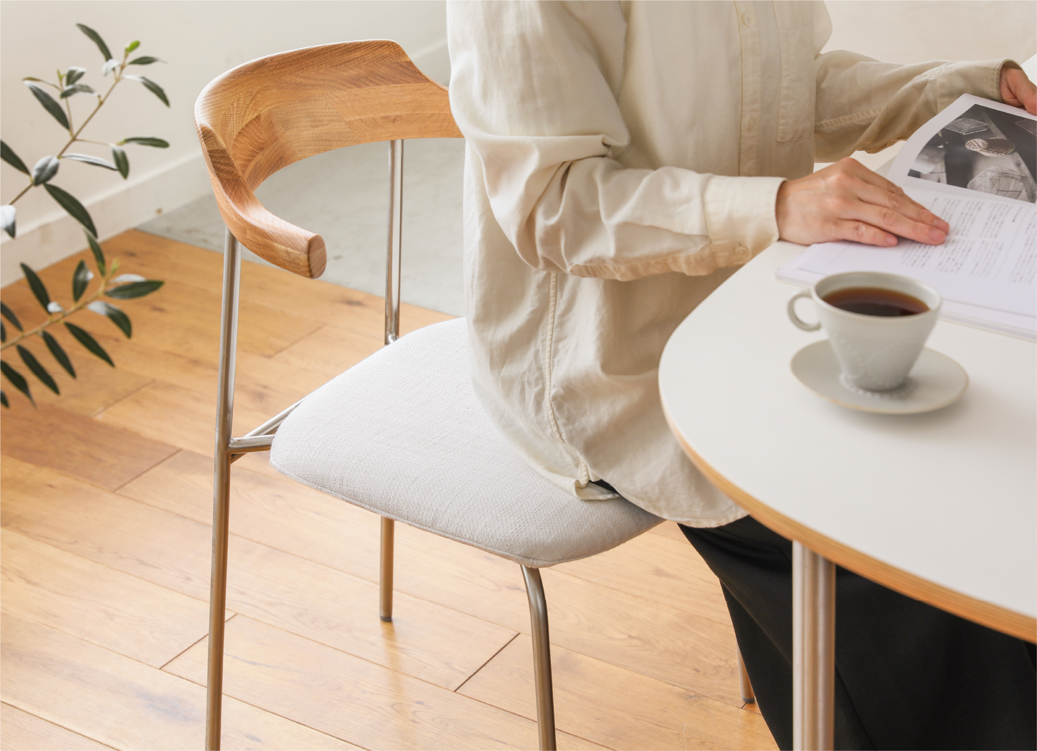 柔らかな使い心地のウッド×アイアンが特徴の「WIRY」シリーズ。こだわり抜いたデザインは、使っている人の生活を豊かにしたい、という思いがあります。