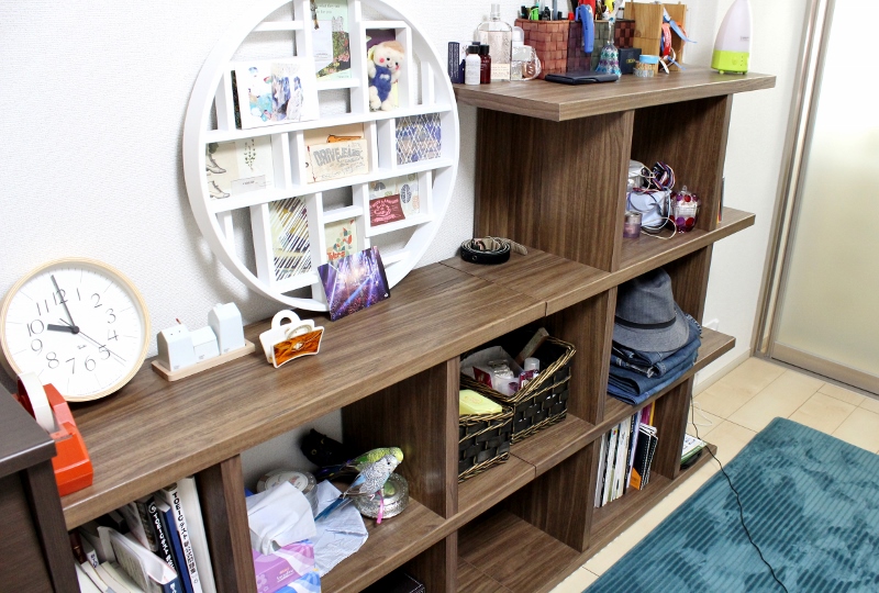生活していくと気をつけていてもなぜかお部屋にあふれ出してくるかわいいインテリアの小物たち。植物や時計、ファブリーズや雑誌など、どんどんとお部屋に散らばりはじめます。
