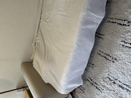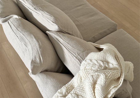 洗い替え用に購入しました。時期的にリネンはどうかな?と思いましたが、合わせるクッションはブランケットなどを温かみのあるものに変えれば全然大丈夫そうです。ブラウンのフレームにもバッチリ合いました。コーデュロイの生地と交互に大切に使おうと思います。