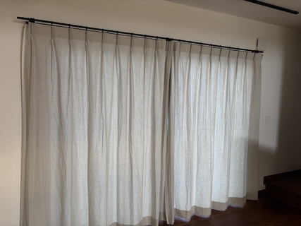 レースカーテンは付けずに、このカーテンに遮光裏地縫製(ノーマル)を付けていただいて、遮光カーテンとして使用しています。