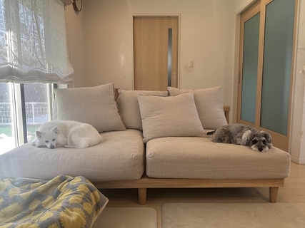 部屋の中での圧迫感なく、でも存在感はありクッションの硬過ぎず柔らかすぎない感じが好きです。