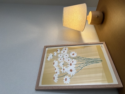 寝室のキャビネットの上の空間の飾りとして、初めてアートポスターをお迎えしました!初めてだったので悩んだのですが、容姿もしっかりしていて、淡いグリーンの色味がとても素敵でした!!このポスターの色を中心にグリーンの色味を取り入れた落ち着く寝室を作りたいです!!