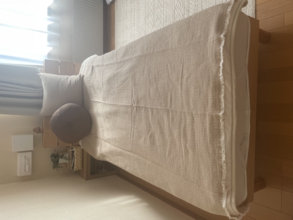春になったので、ベッドにかけていたウールのブランケットからリネンへ衣替え。