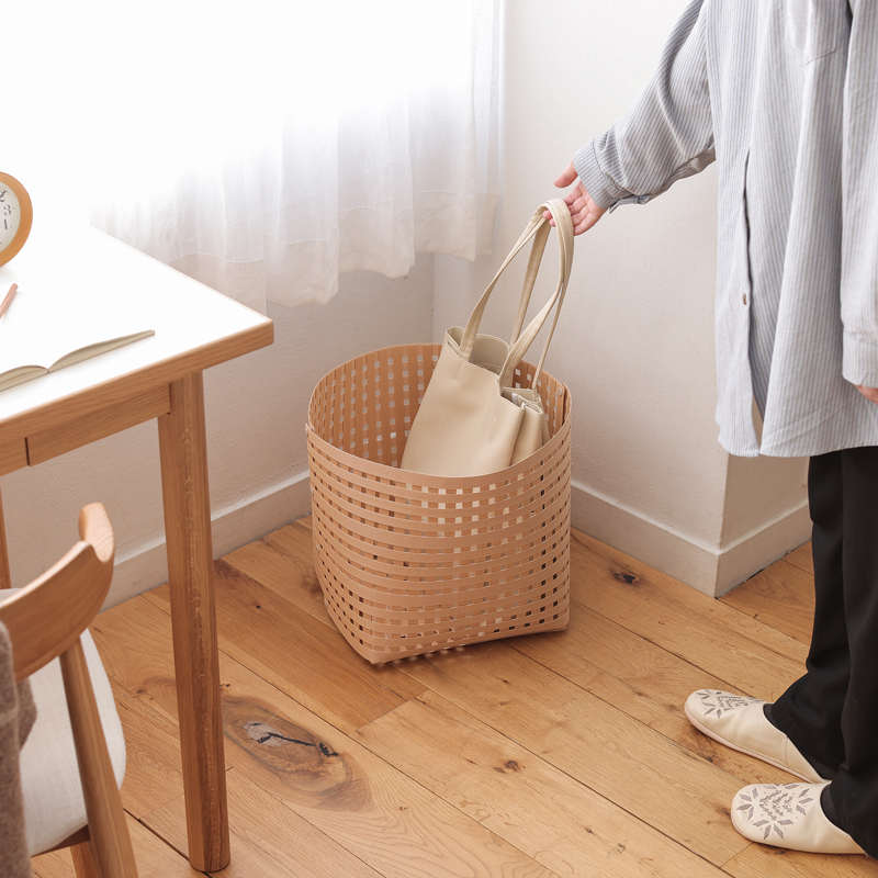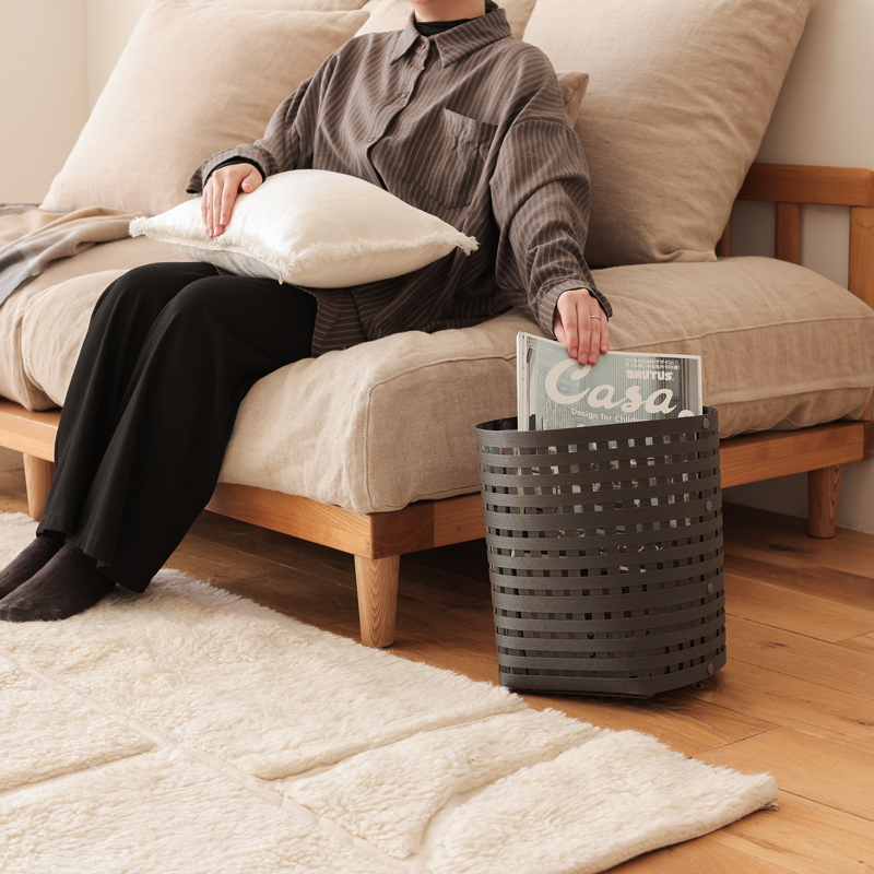 なので、ソファー横には、よく使うブランケットを入れたり、通勤バッグの定位置として活躍してくれます。