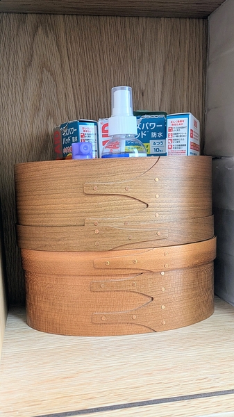 実際に2年間ほど使用しているシェーカーボックスと比べてみると、その変化がお分かりいただけるかと思います。色味が濃く、艶がでてきて良い飴色に。