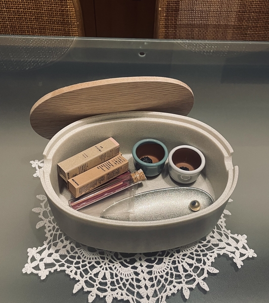 うちでは、小さめのお香入れにしています。テーブルに置いてあるだけでも可愛いです。